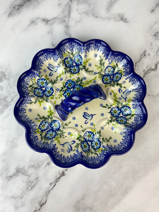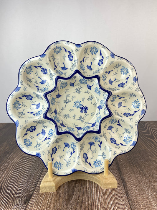 Unikat Egg Plate - Shape V131 - Blue Daisies