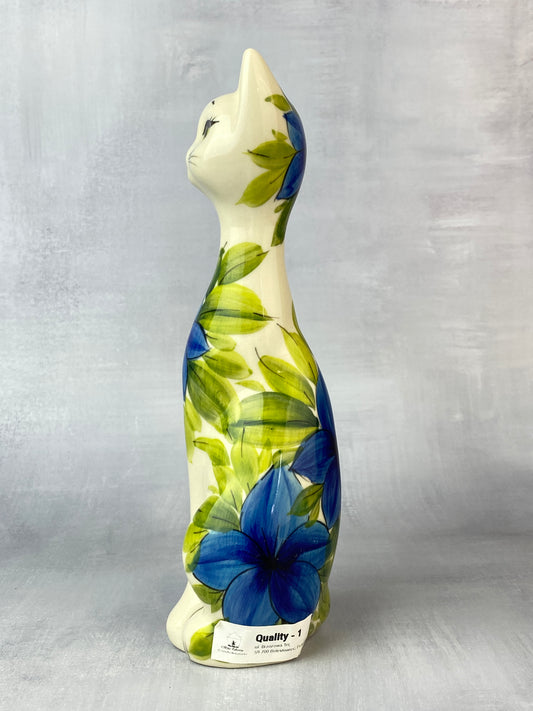 Medium Moja Cat Figurine - Dark Blue Flowers