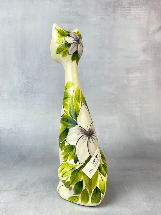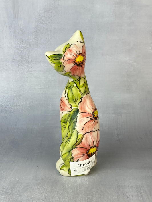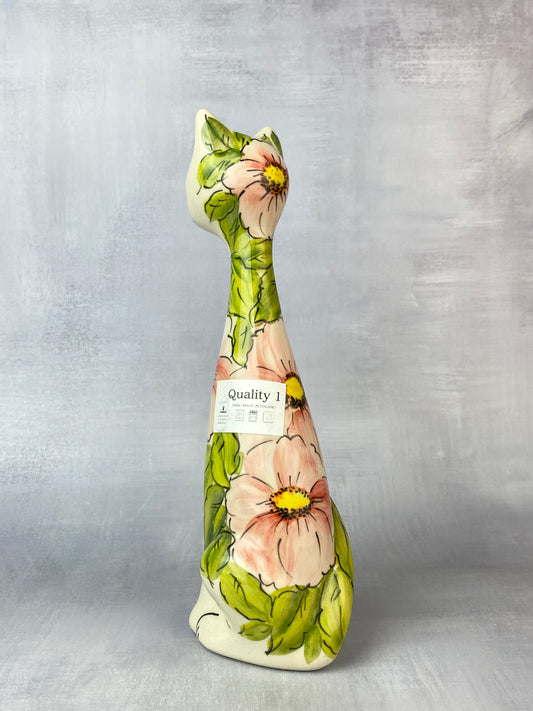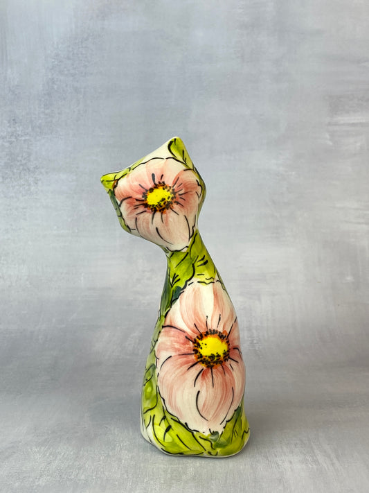 Tall Moja Cat Figurine - Pink Flowers