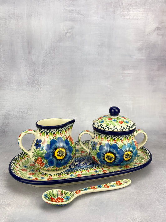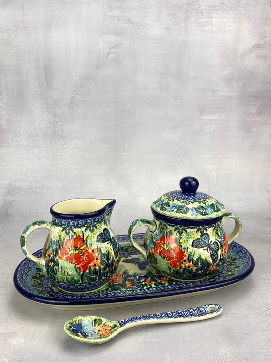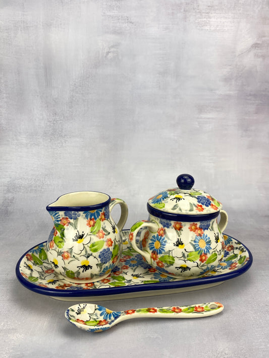 Unikat Creamer and Sugar with Tray & Spoon - Shapes 422 & 592 - Pattern U5158