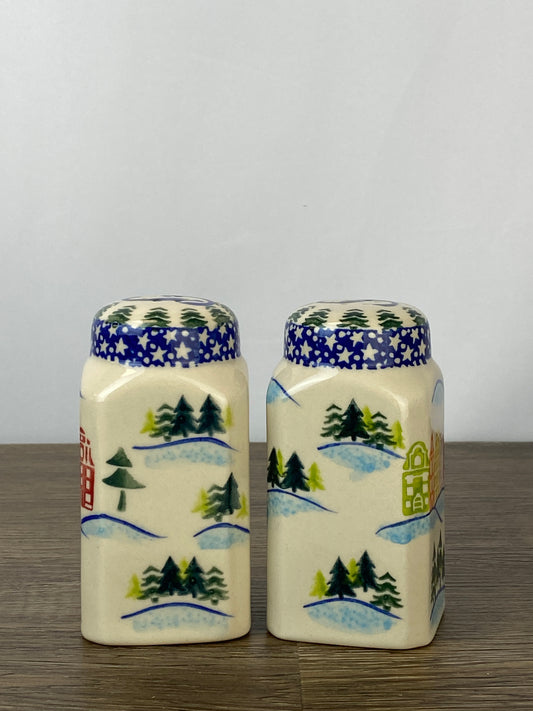 Vena Unikat Stovetop Salt and Pepper Set - Shape V320 - Christmas in Bolesławiec Sledding Snowman