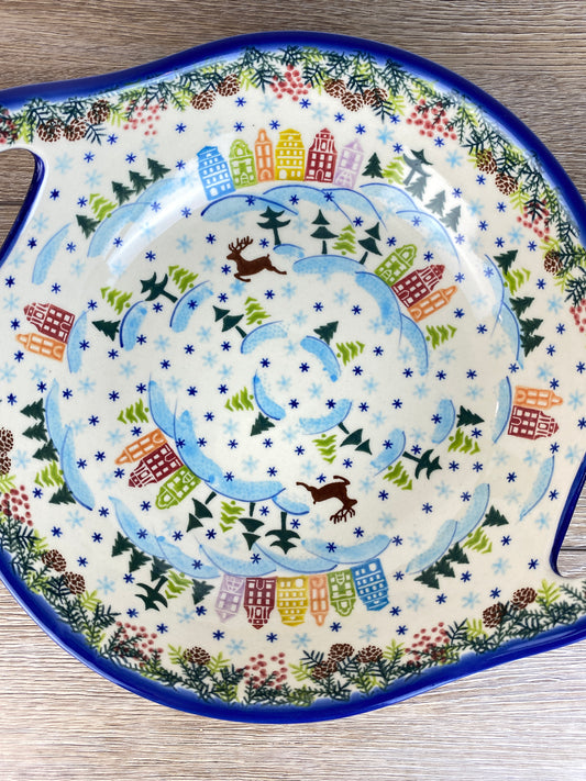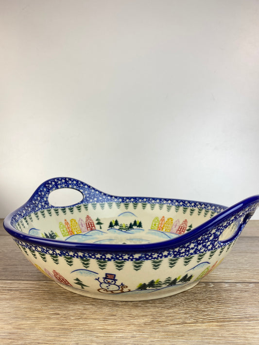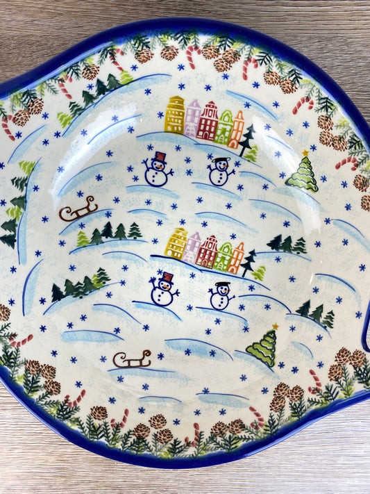 Vena XL Unikat Bowl with Handles - Shape V079 - Christmas in Bolesławiec Sledding Snowmen