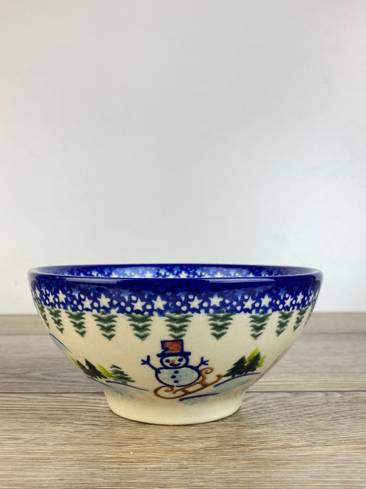 Vena Unikat Holiday Pedestal Bowl - V233 - Christmas in Bolesławiec Sledding Snowman