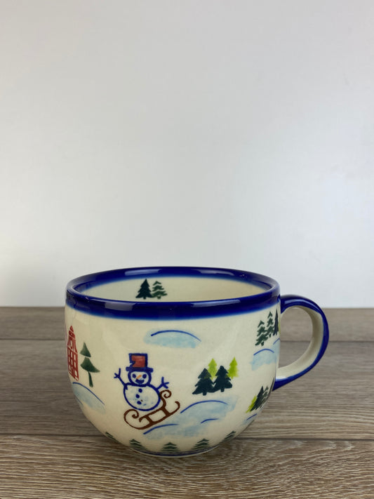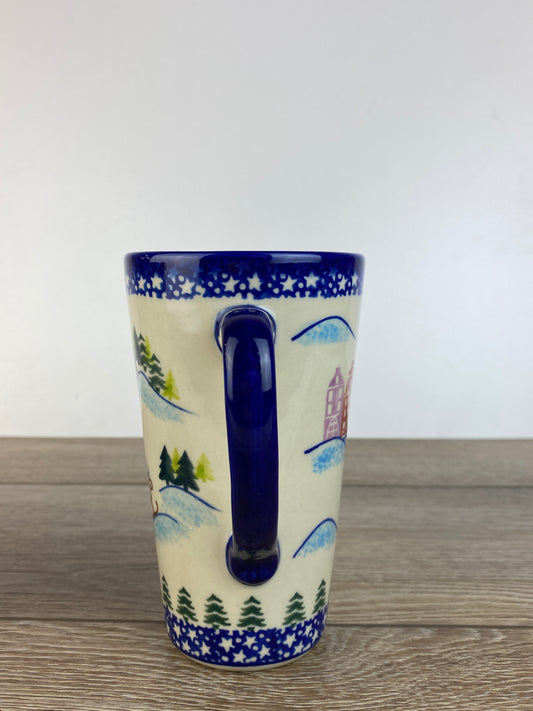 Vena Unikat Latte Mug - Shape V468 - Christmas in Bolesławiec Sledding Snowman