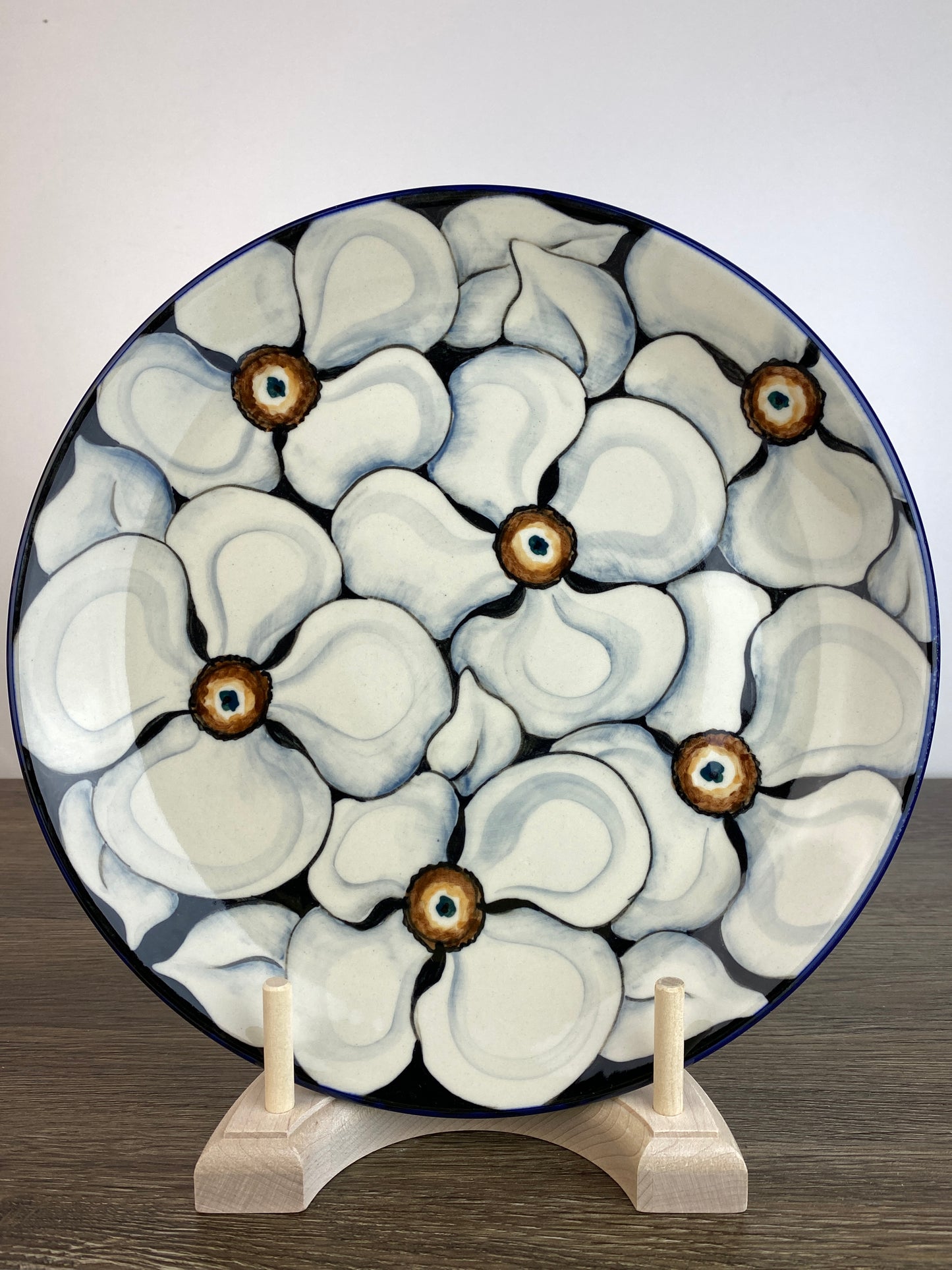 A gorgeous 10.5" dinner plate. Great for use as a dinner plate, or small serving platter. The plate does not have holes in the back for hanging.