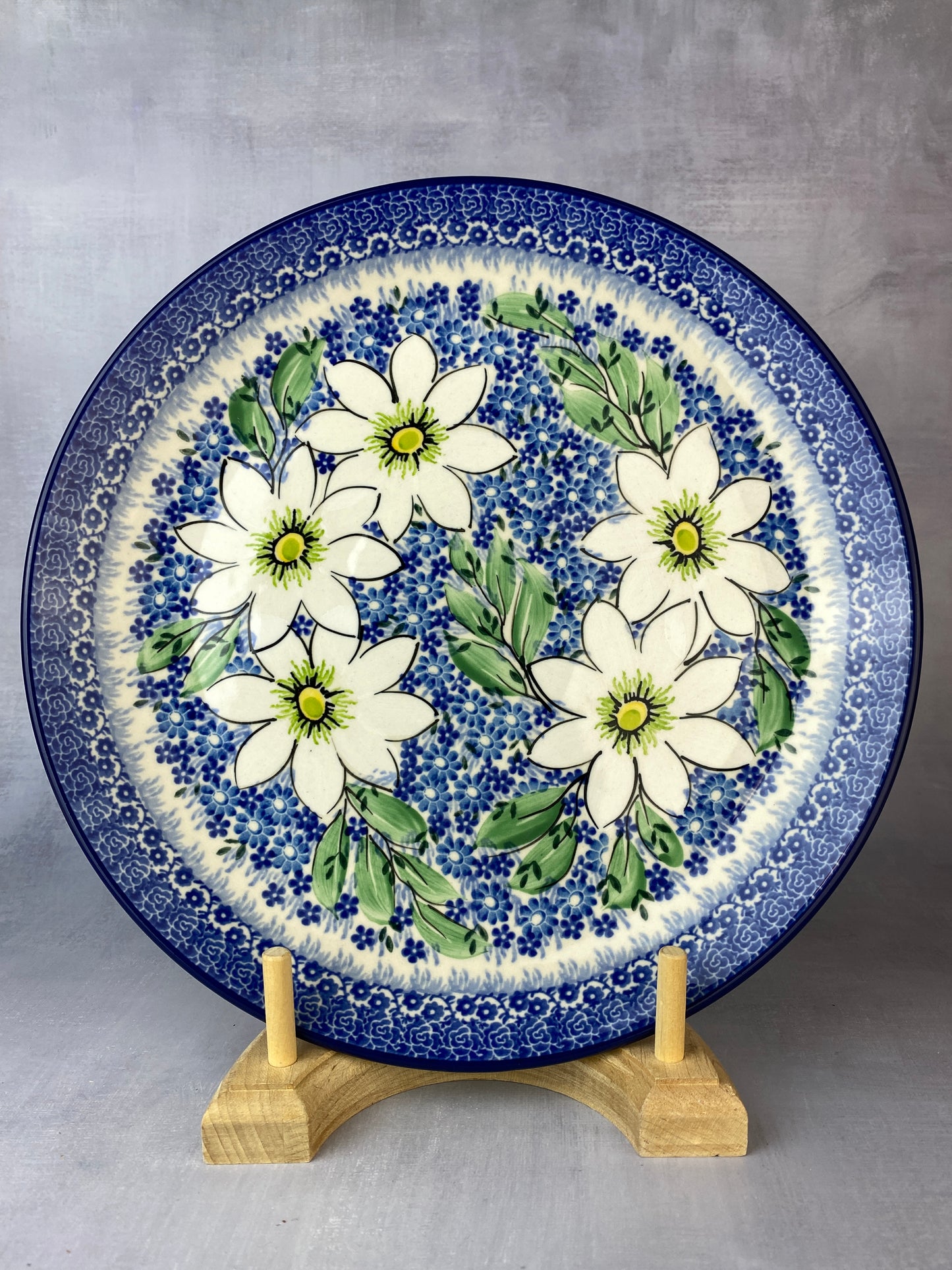 A gorgeous 10.5" dinner plate. Great for use as a dinner plate, or small serving platter. The plate does not have holes in the back for hanging.