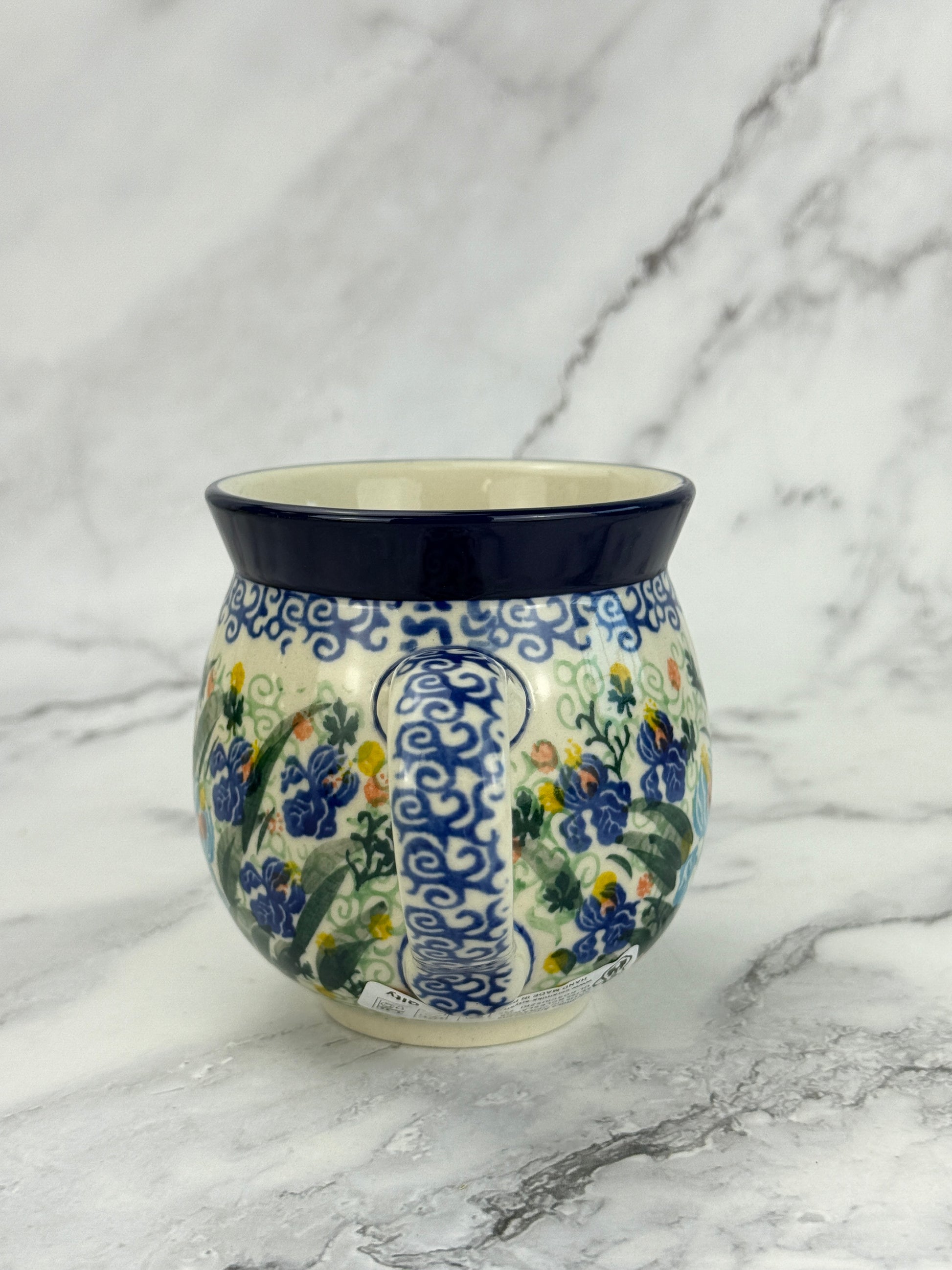 A lovely 12oz bubble mug, perfect for everyday use. This mug stands 3.75" tall and is 5" wide from the edge of the handle.