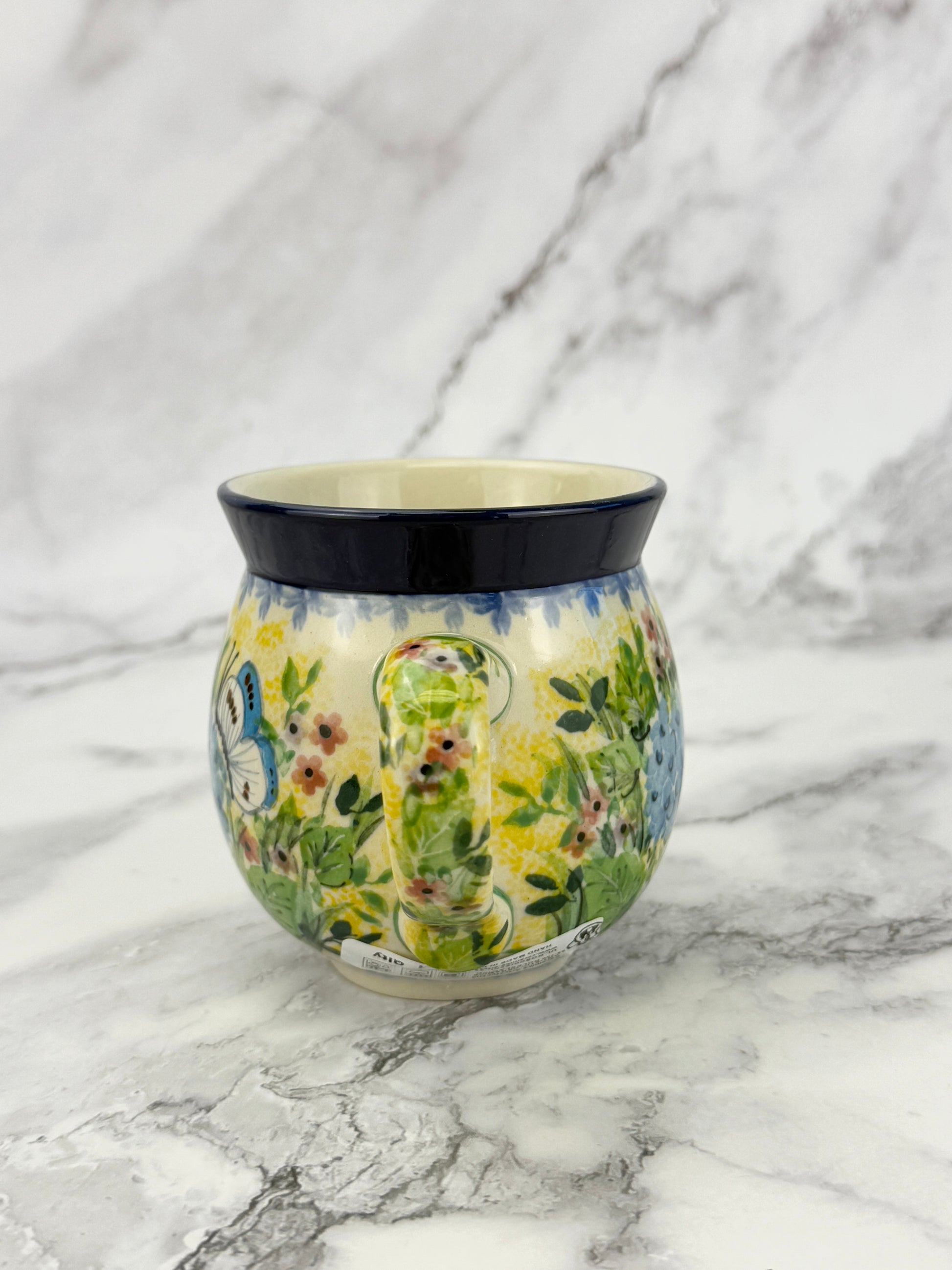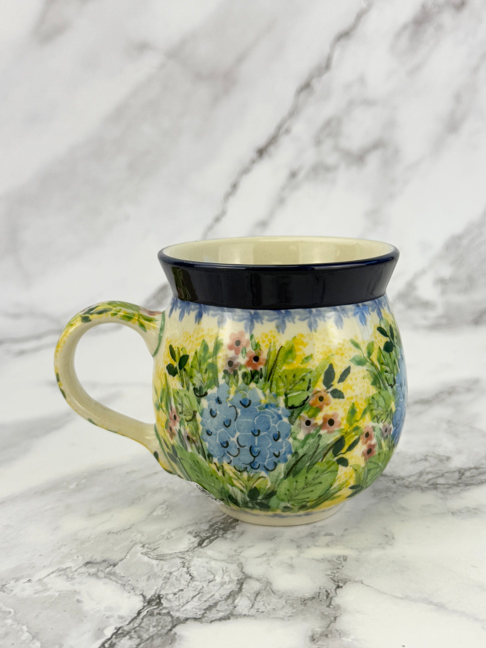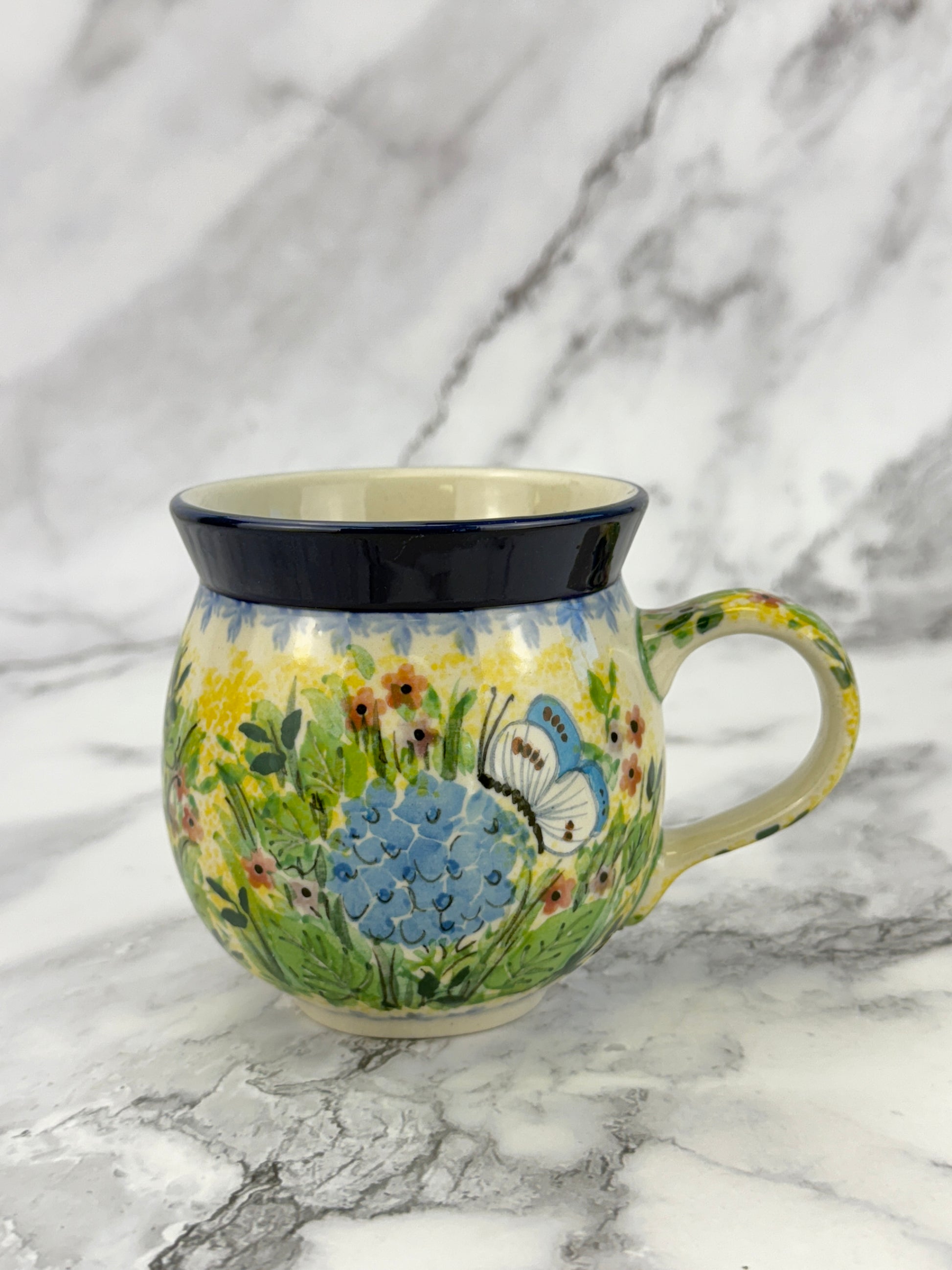 A lovely 12oz bubble mug, perfect for everyday use. This mug stands 3.75" tall and is 5" wide from the edge of the handle.