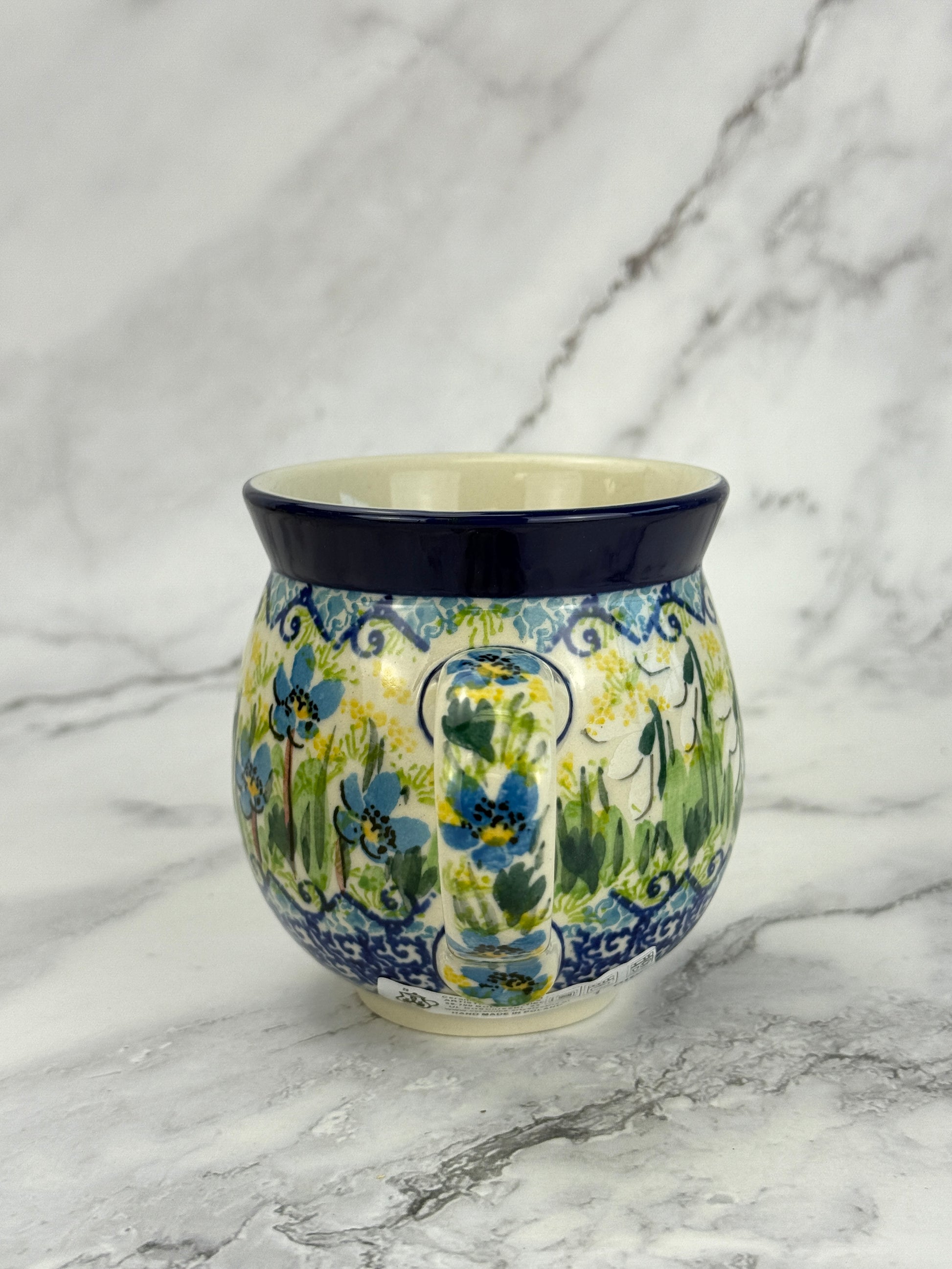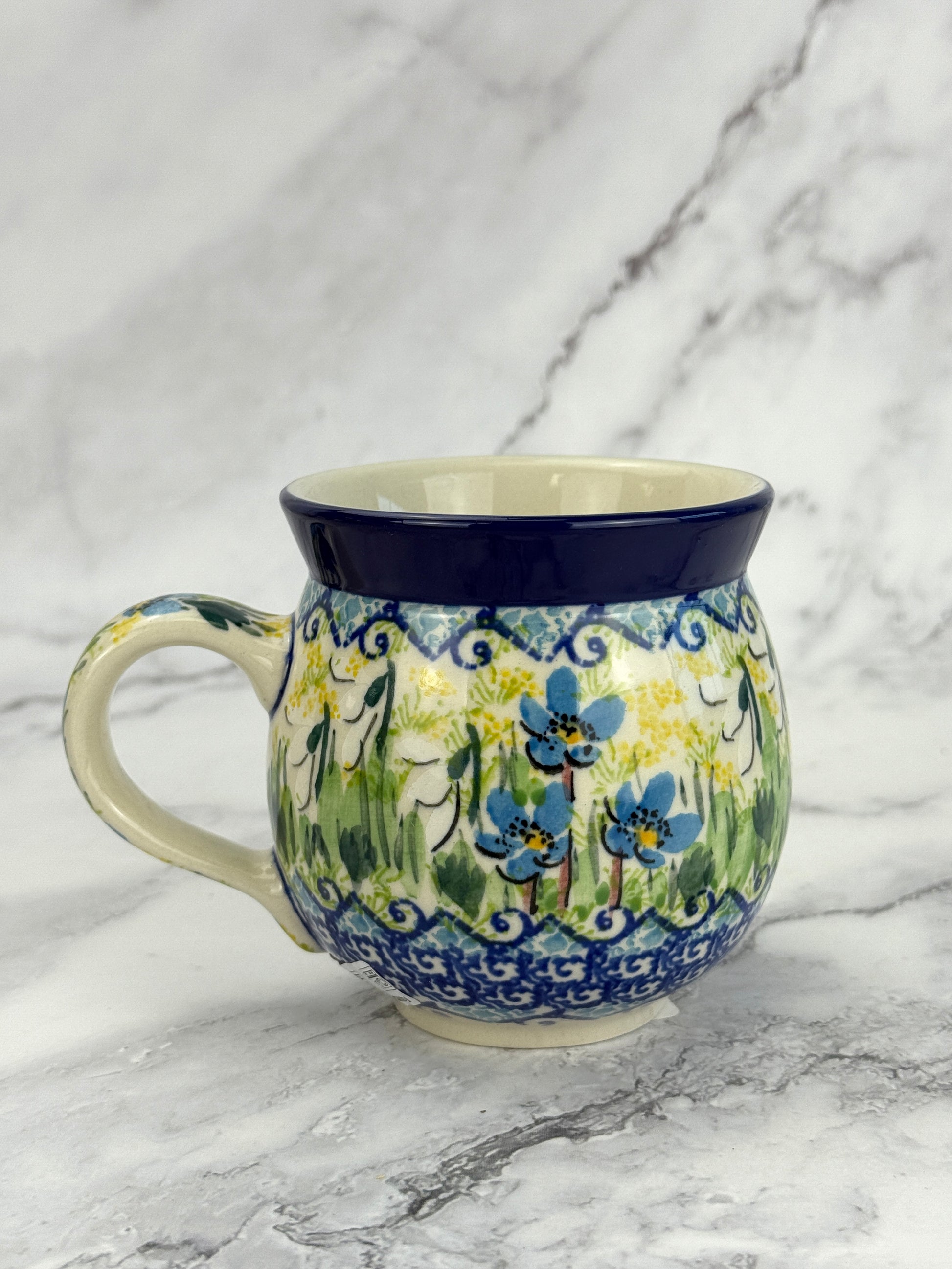 A lovely 12oz bubble mug, perfect for everyday use. This mug stands 3.75" tall and is 5" wide from the edge of the handle.