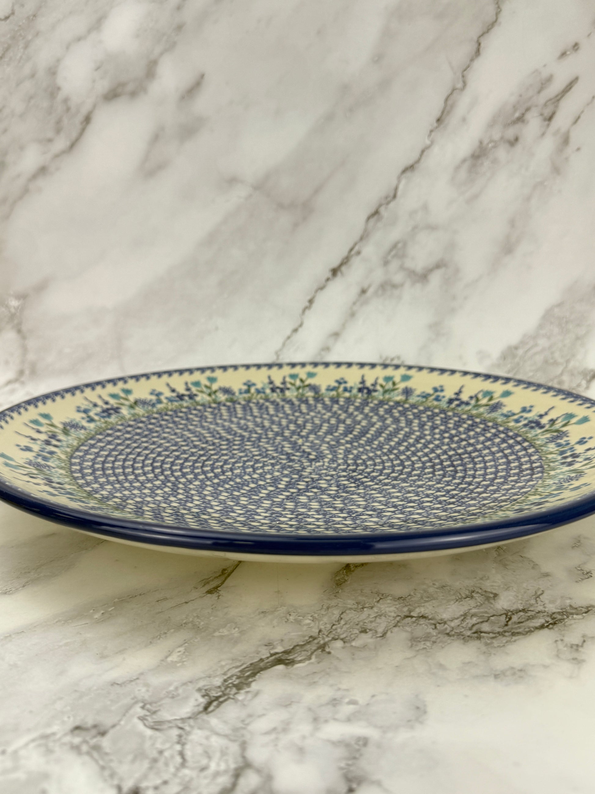 This gorgeous platter measures 14” in diameter and sits 1.7” off the ground. A true showstopping piece. The platter features two holes on the back for hanging.