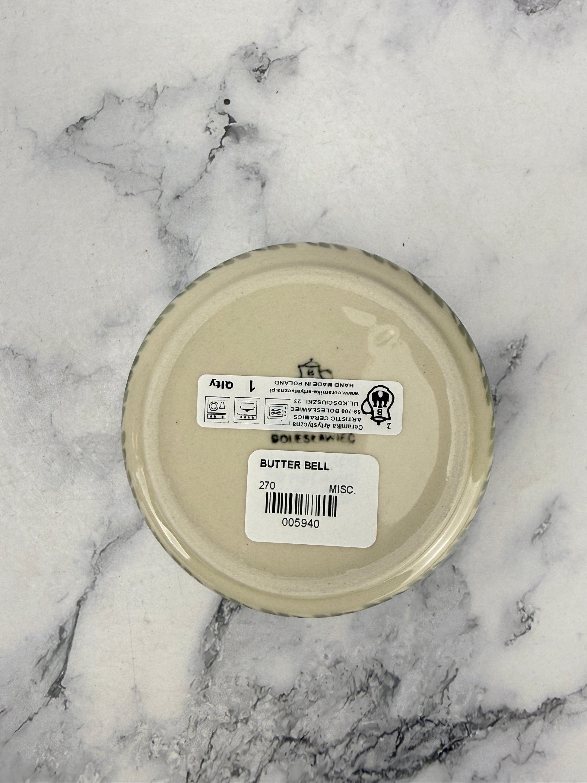 This Unikat Butter crock is a high-quality, French-style butter crock crafted from Polish stoneware. Its durable design and intricate, hand-painted pattern make it a stylish and long-lasting addition to any kitchen table. Perfect for storing and serving butter and other soft spreads.
