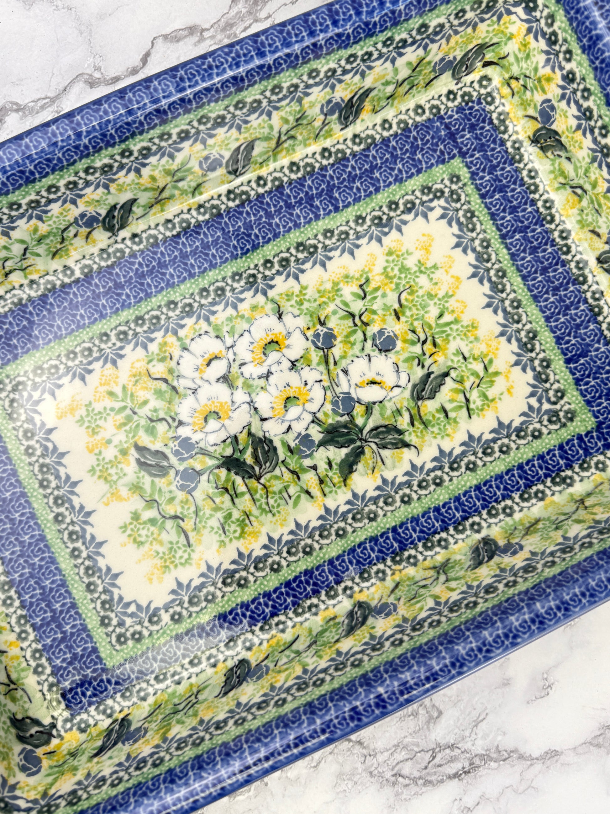 This stylish Polish Pottery Large Rectangular Baker offers a classic and functional design for both oven-to-table and dinner table use. Crafted from durable and resilient stoneware, this baker is microwave, dishwasher, and oven safe.