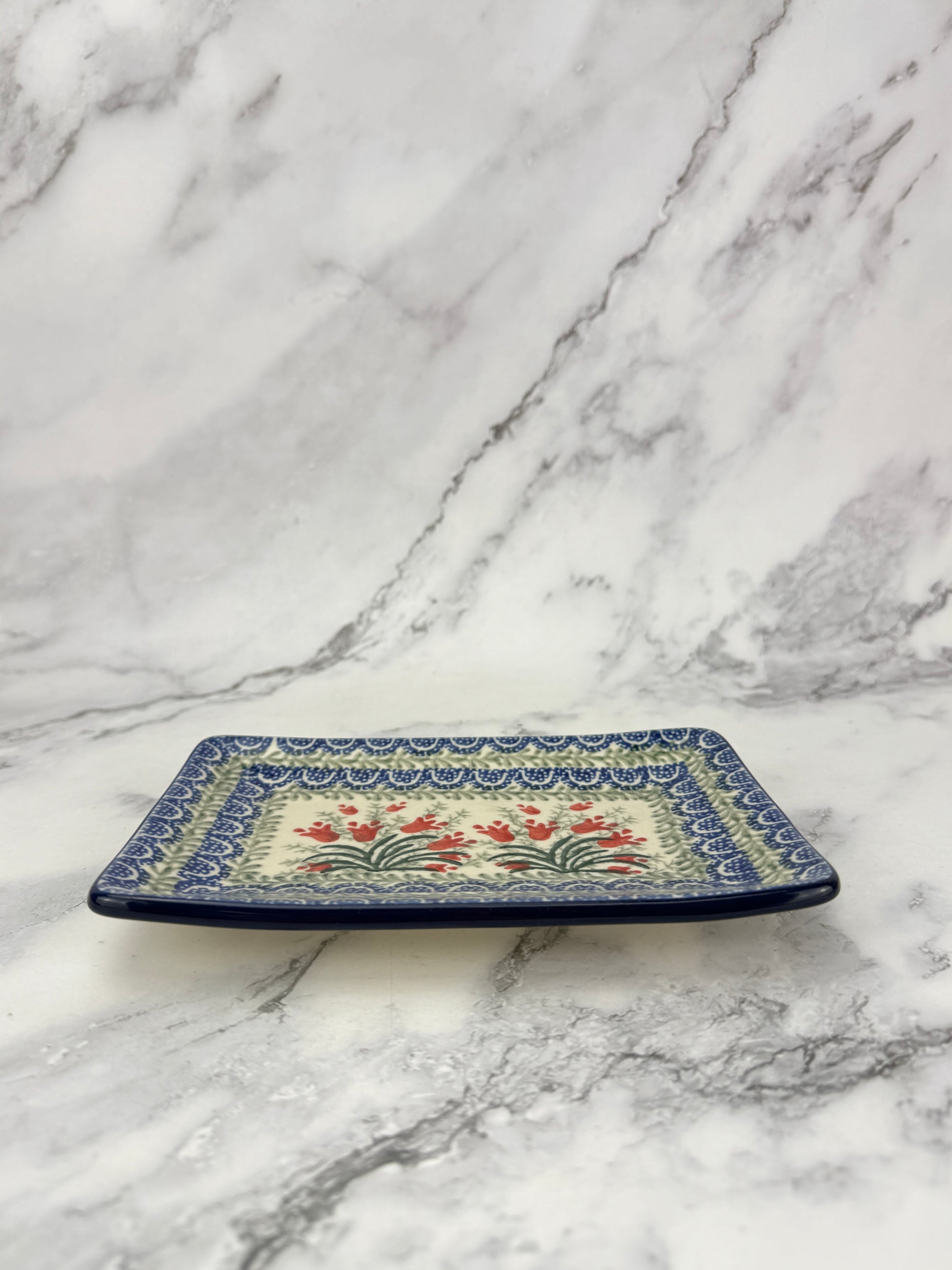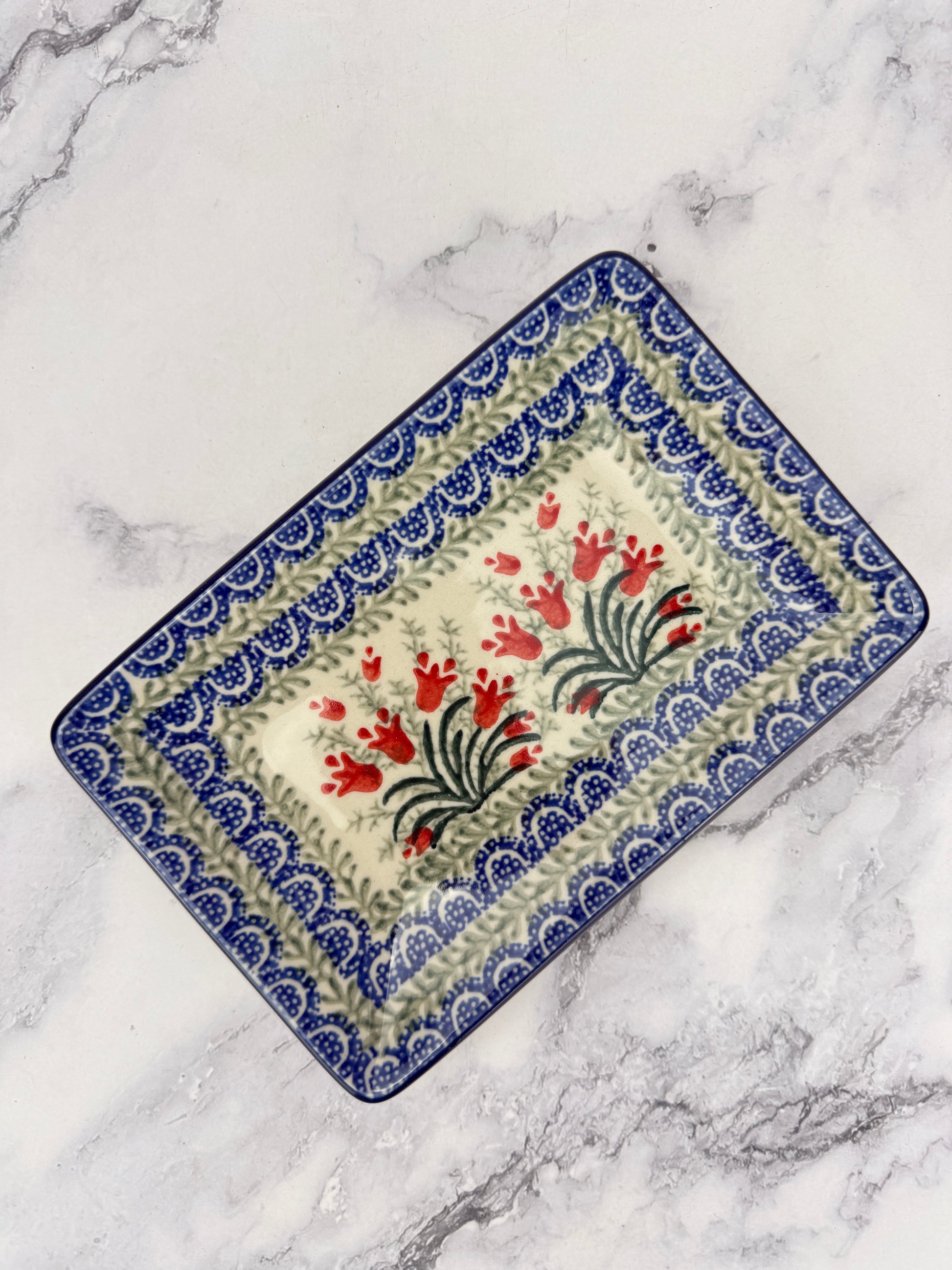The tray measures 7x4.5" It is slightly curved along the edges.