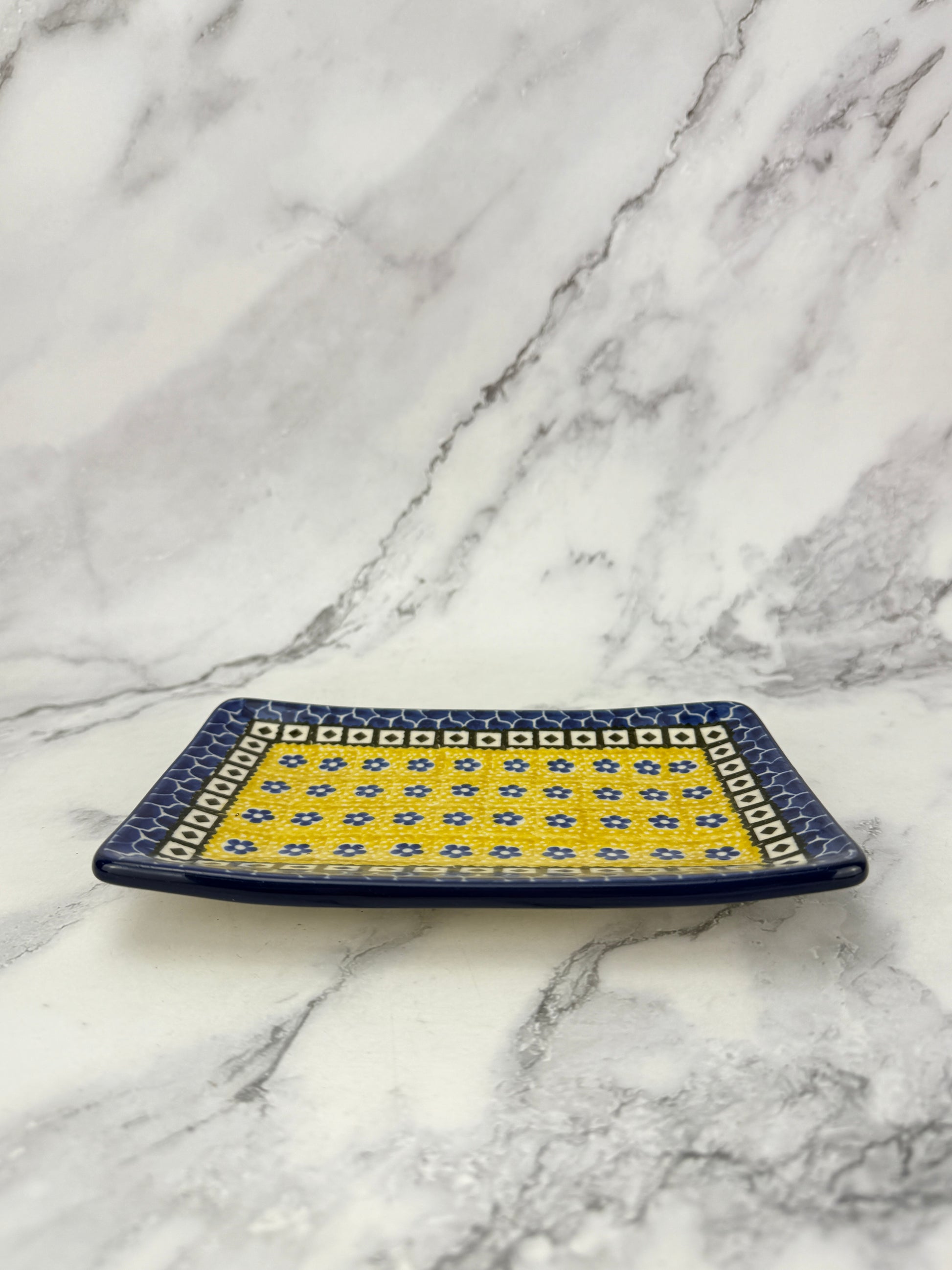 The tray measures 7x4.5" It is slightly curved along the edges.