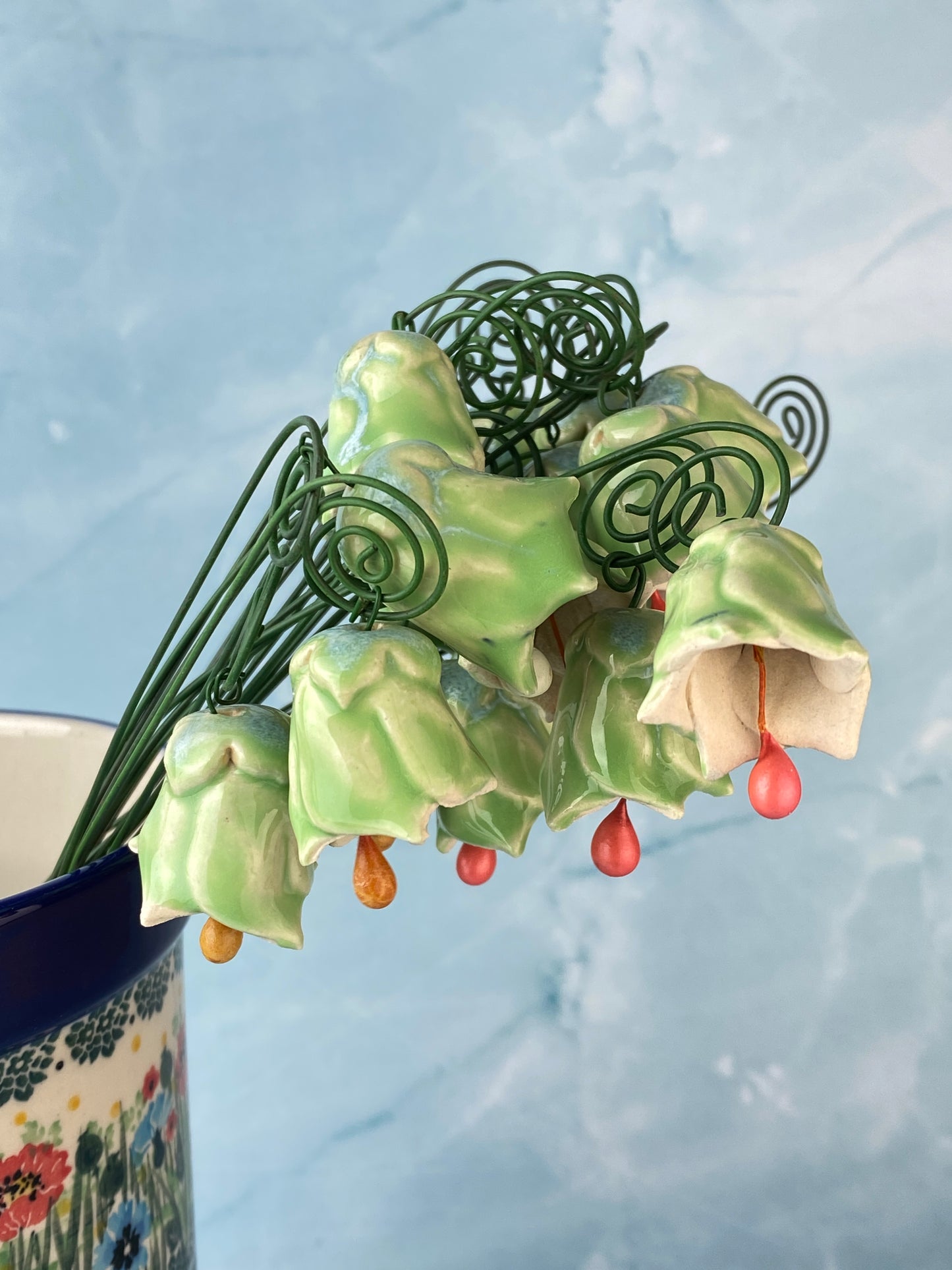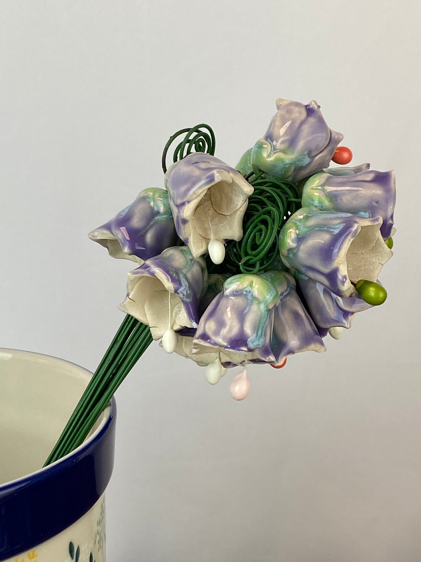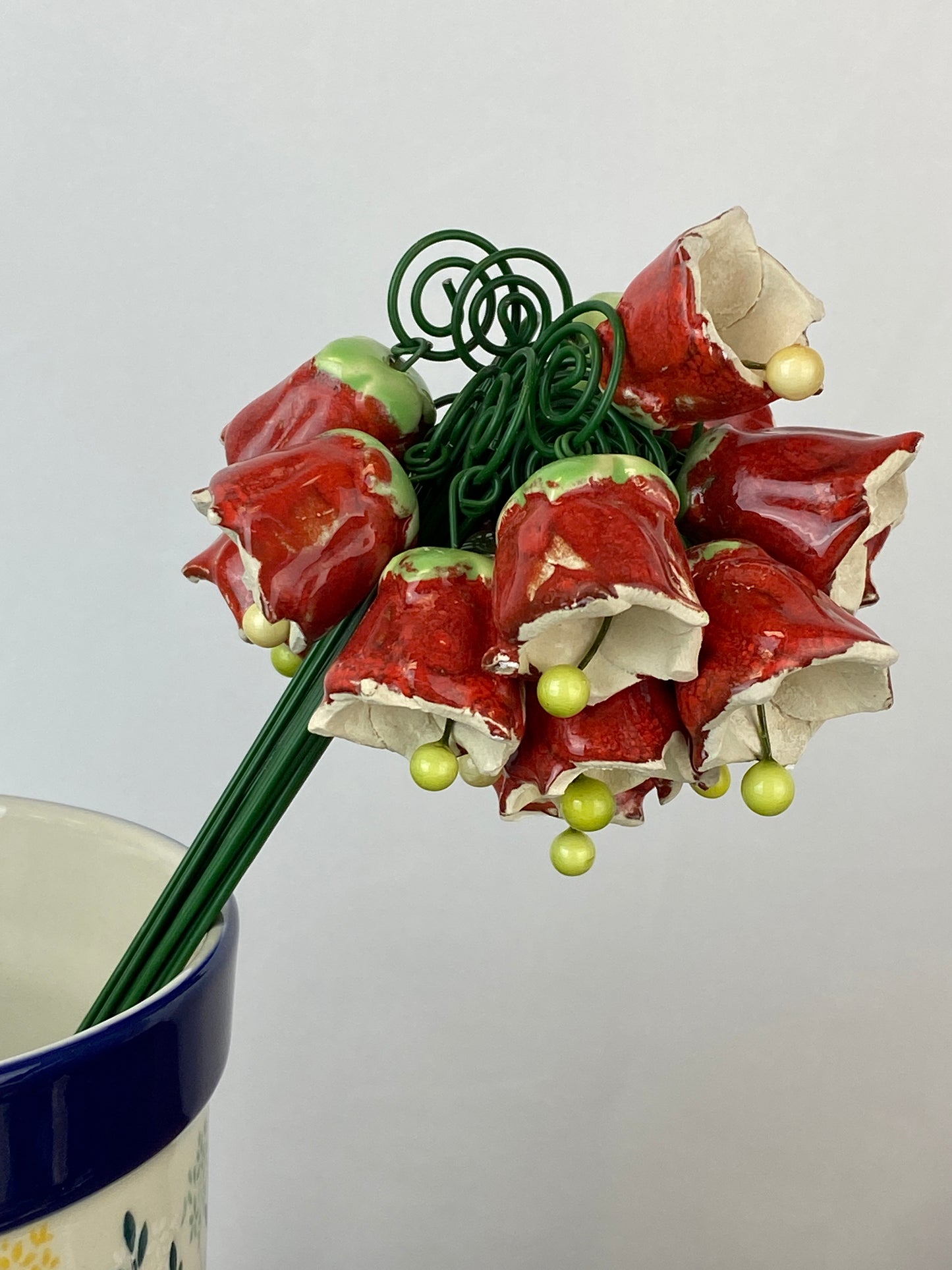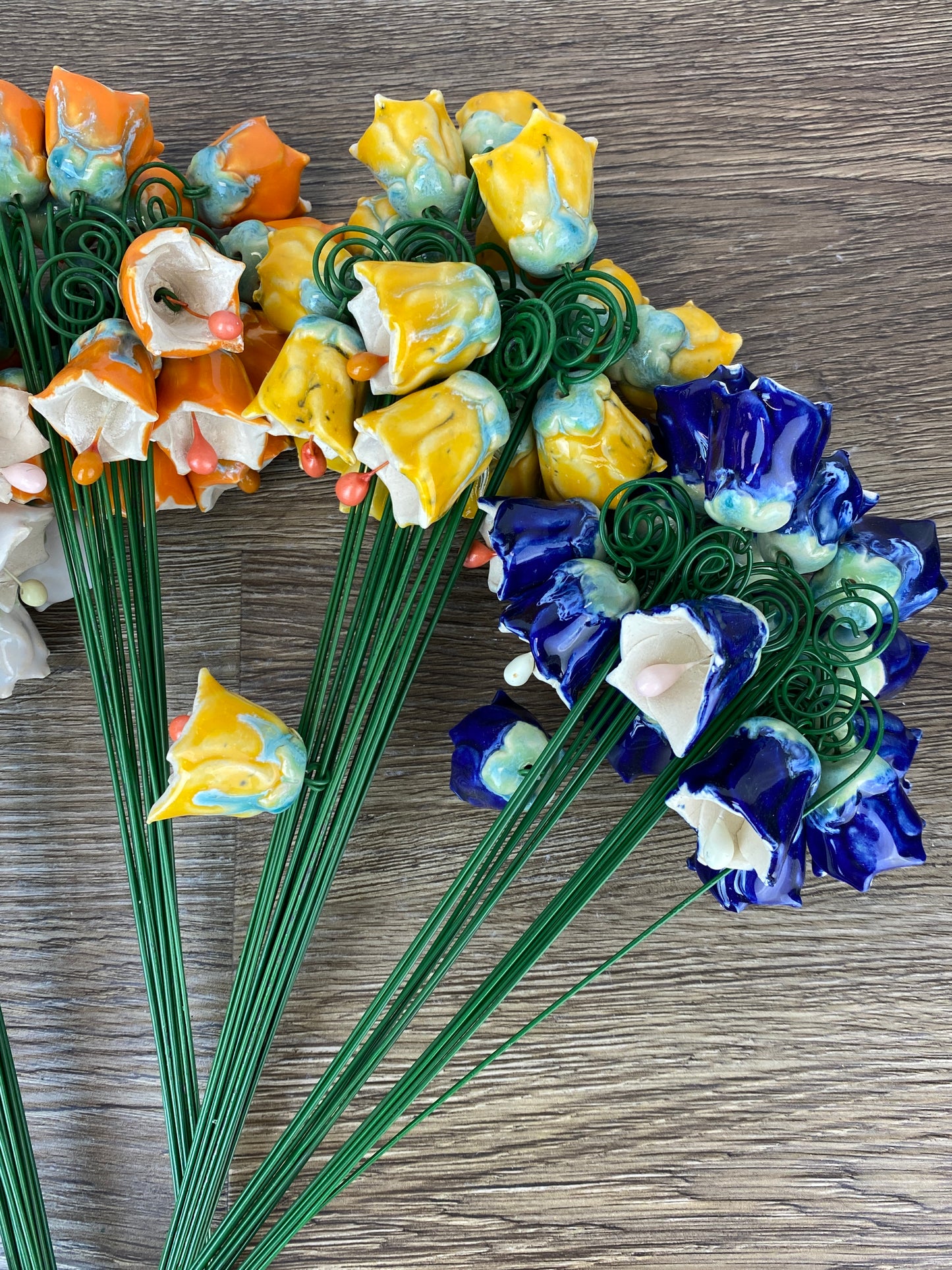 Our twinkling / bell flowers are back! They are incredibly charming in their form, and are beautiful alone or mixed with our other ceramic flowers and leaves. In large bunches, they make a delightful twinkling noise when shaken!