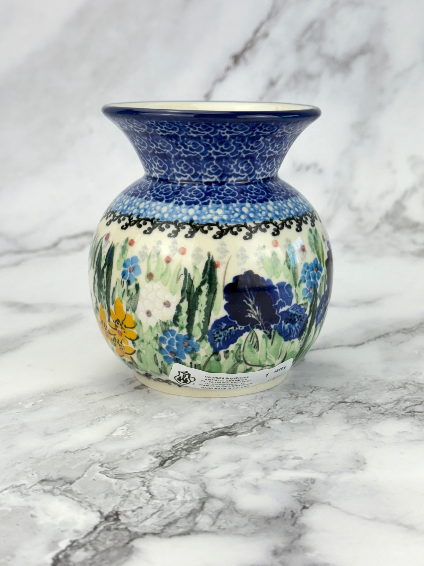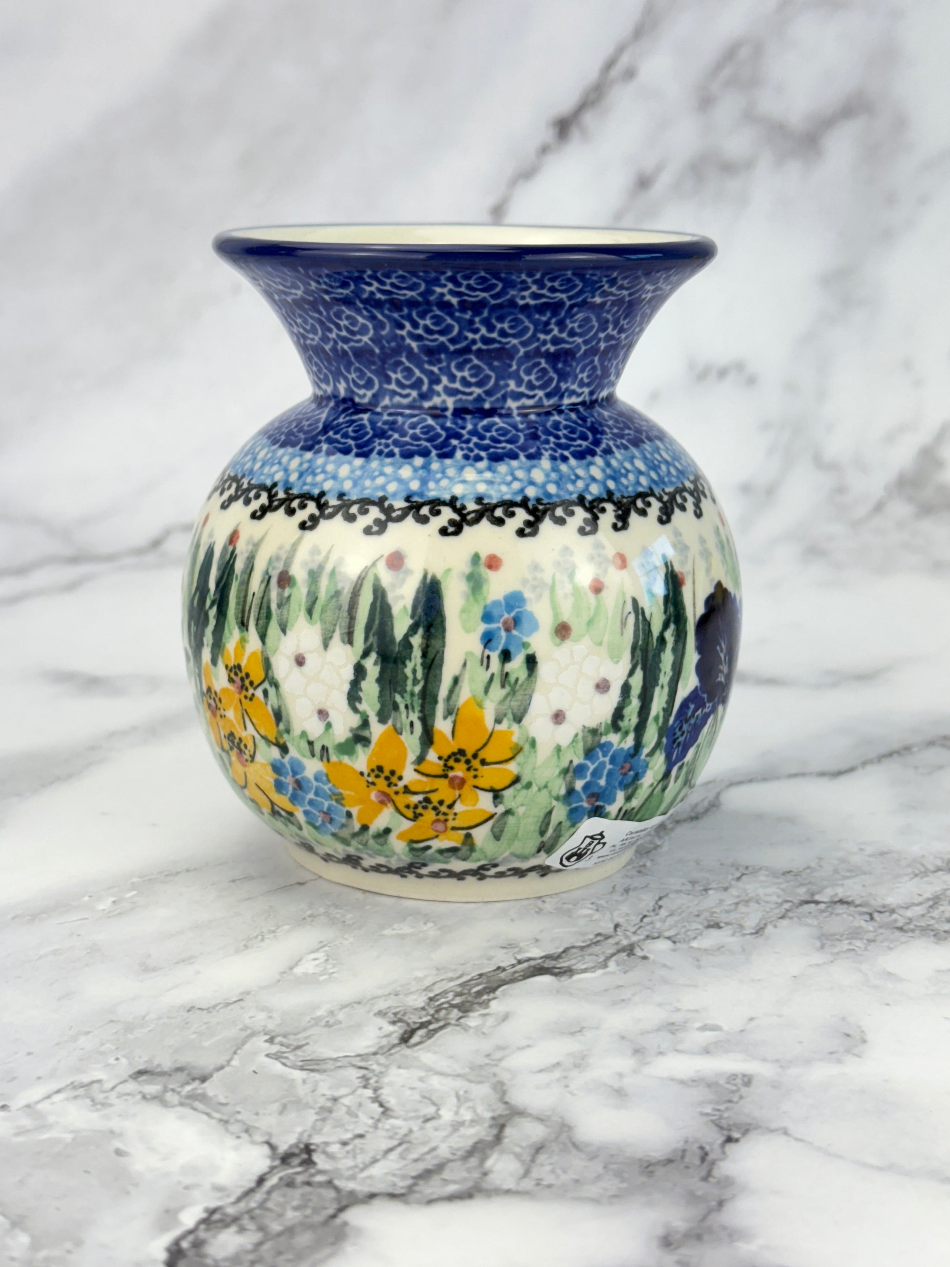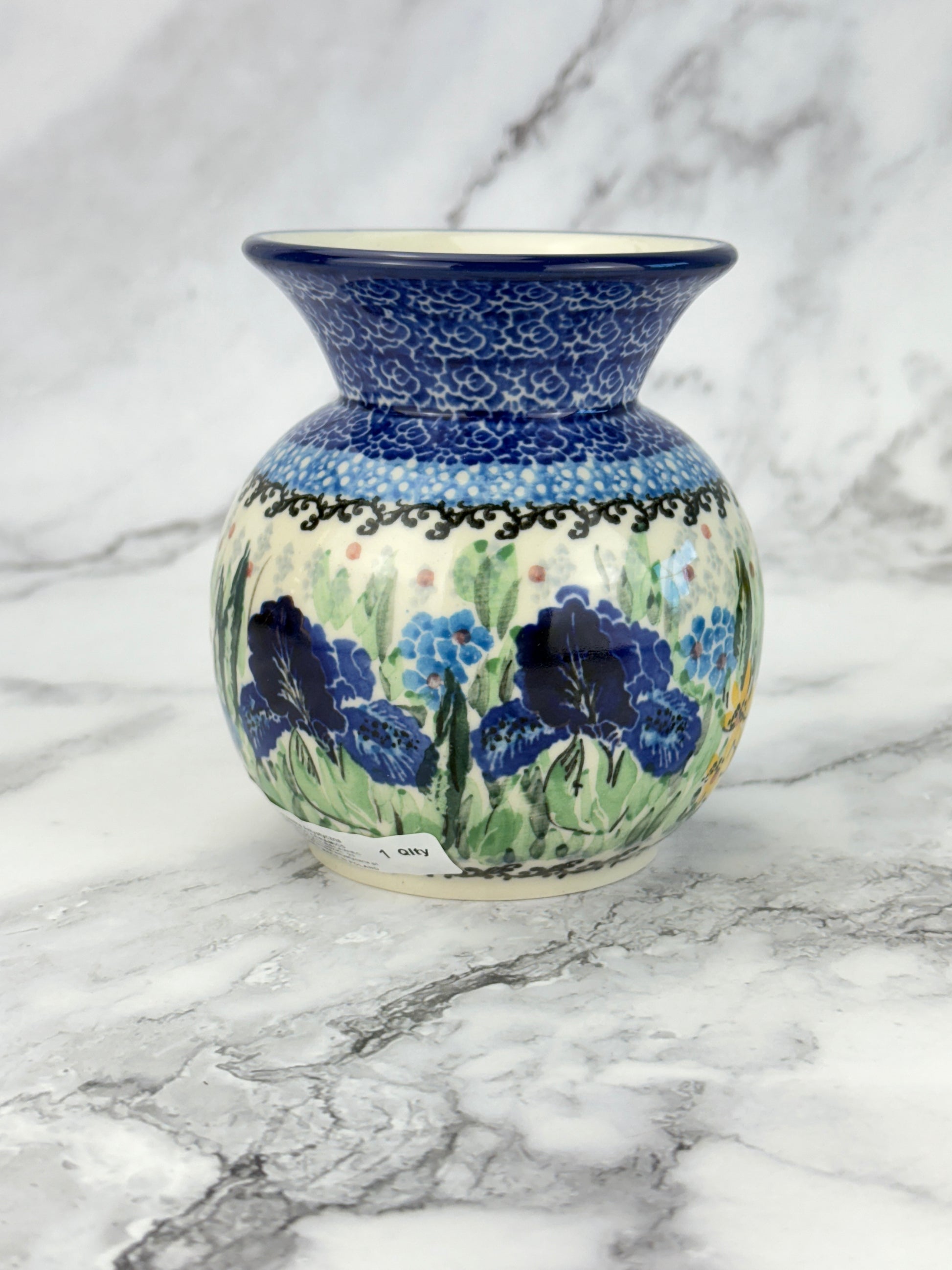 A sweet bud vase, perfect for flowers plucked fresh from your garden. 4.25" tall, 4" in diameter.