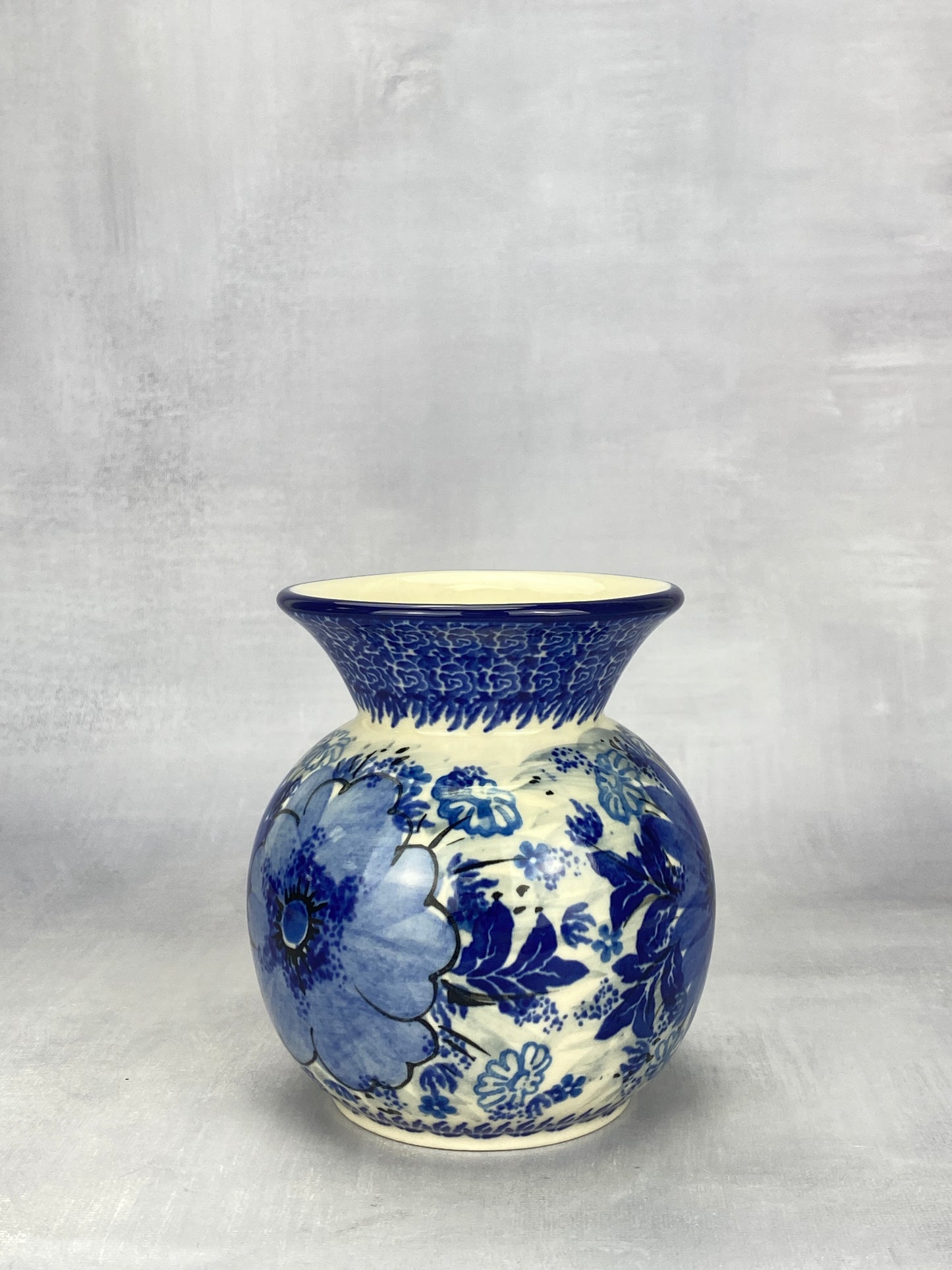 A sweet bud vase, perfect for flowers plucked fresh from your garden. 4.25" tall, 4" in diameter.