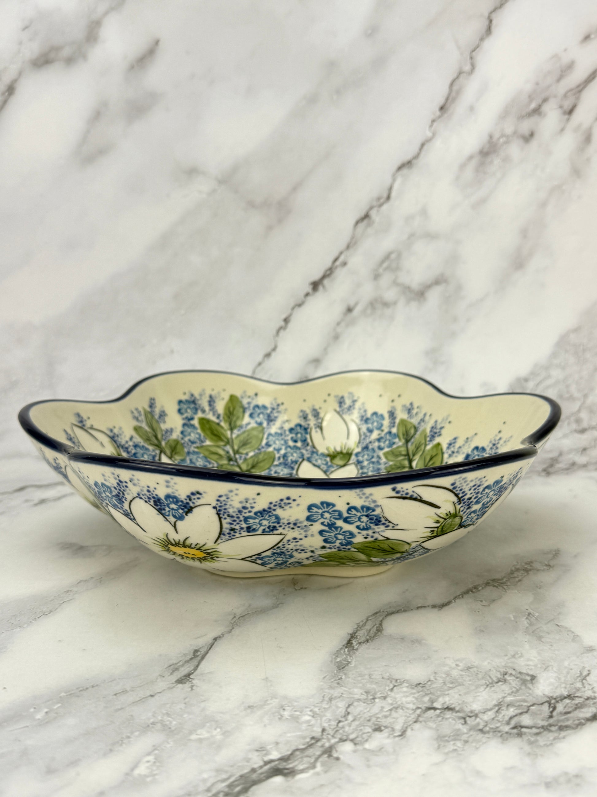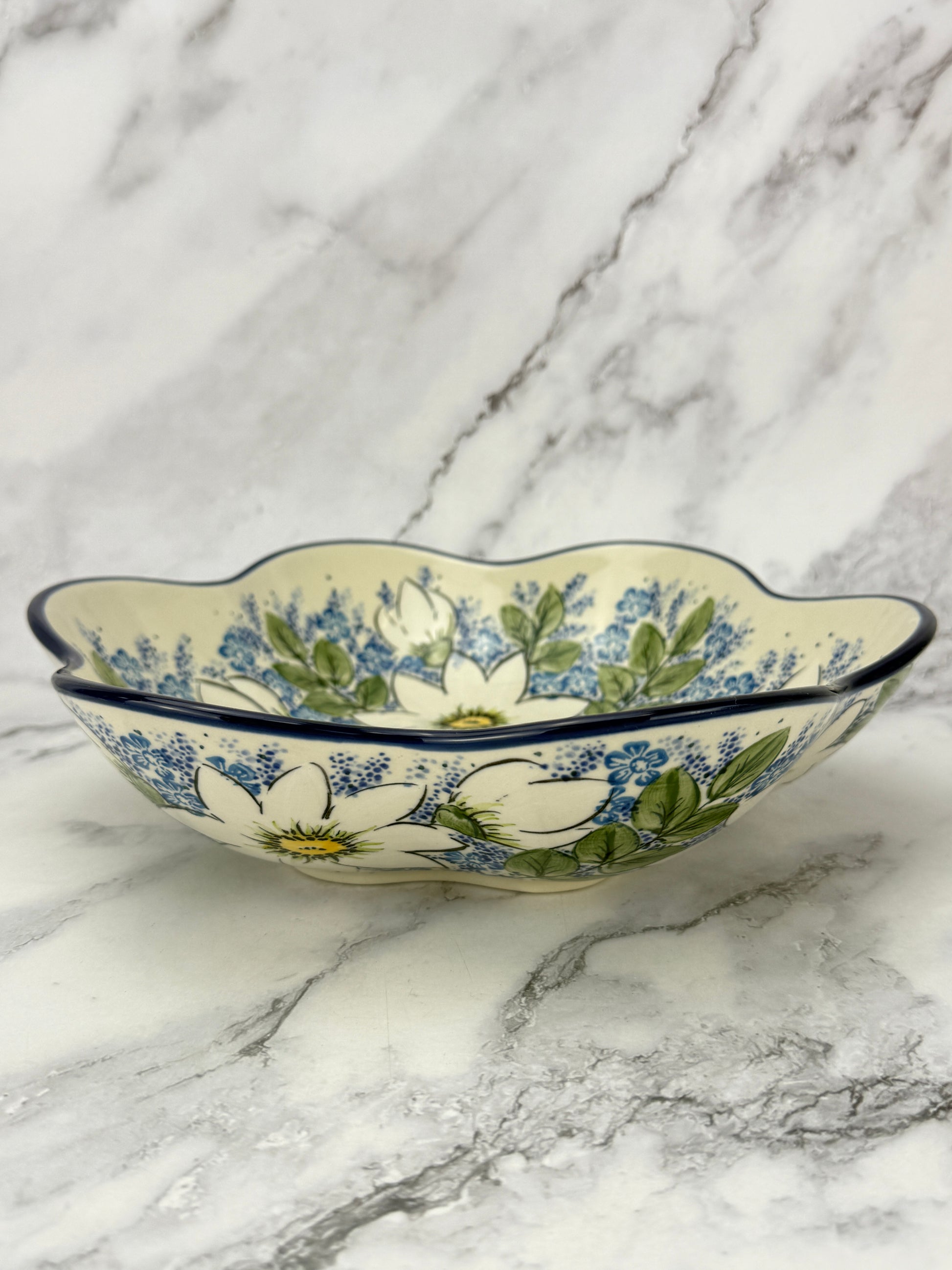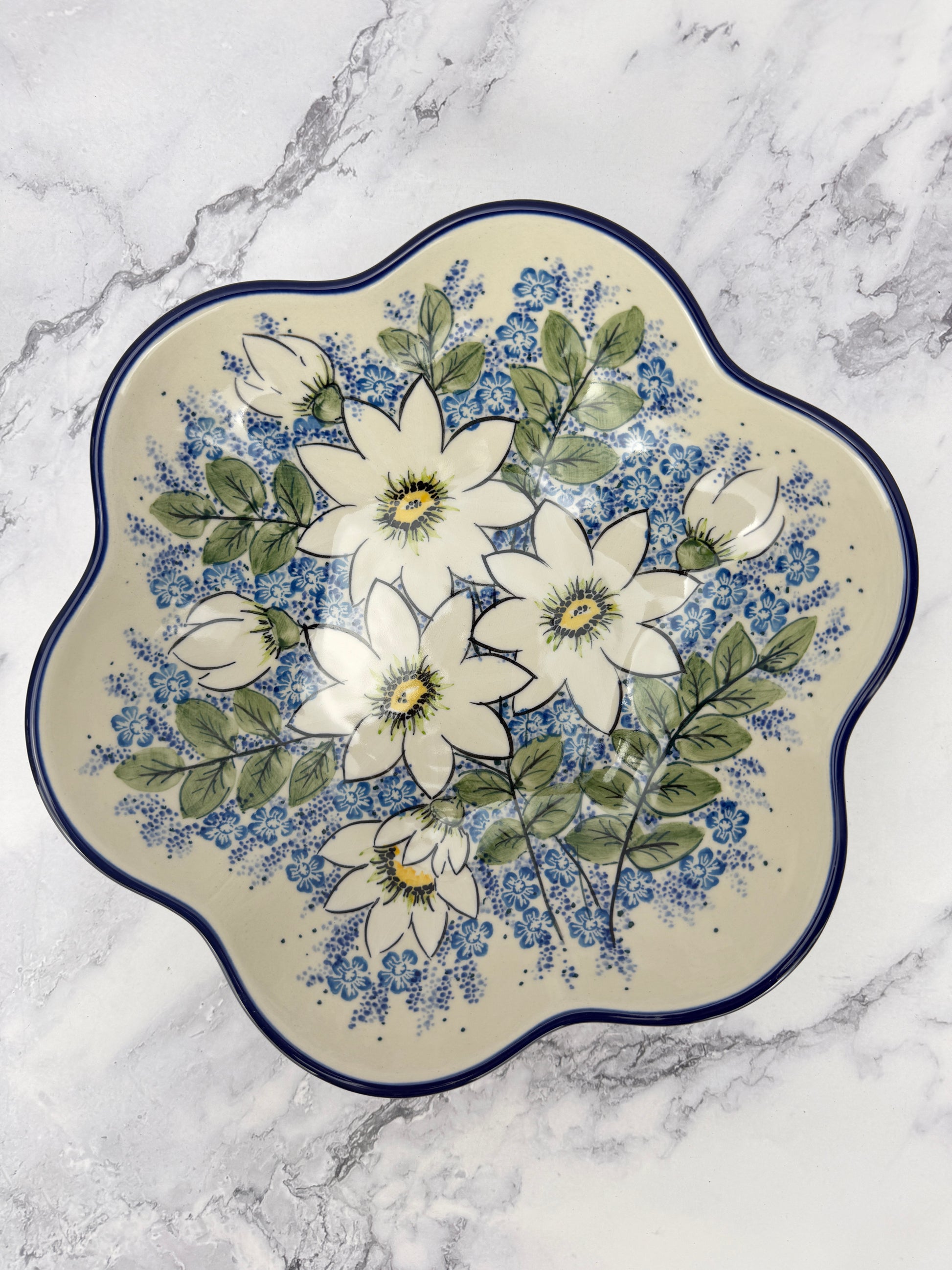 This beautiful flower shaped bowl measures 10.25x2.75"