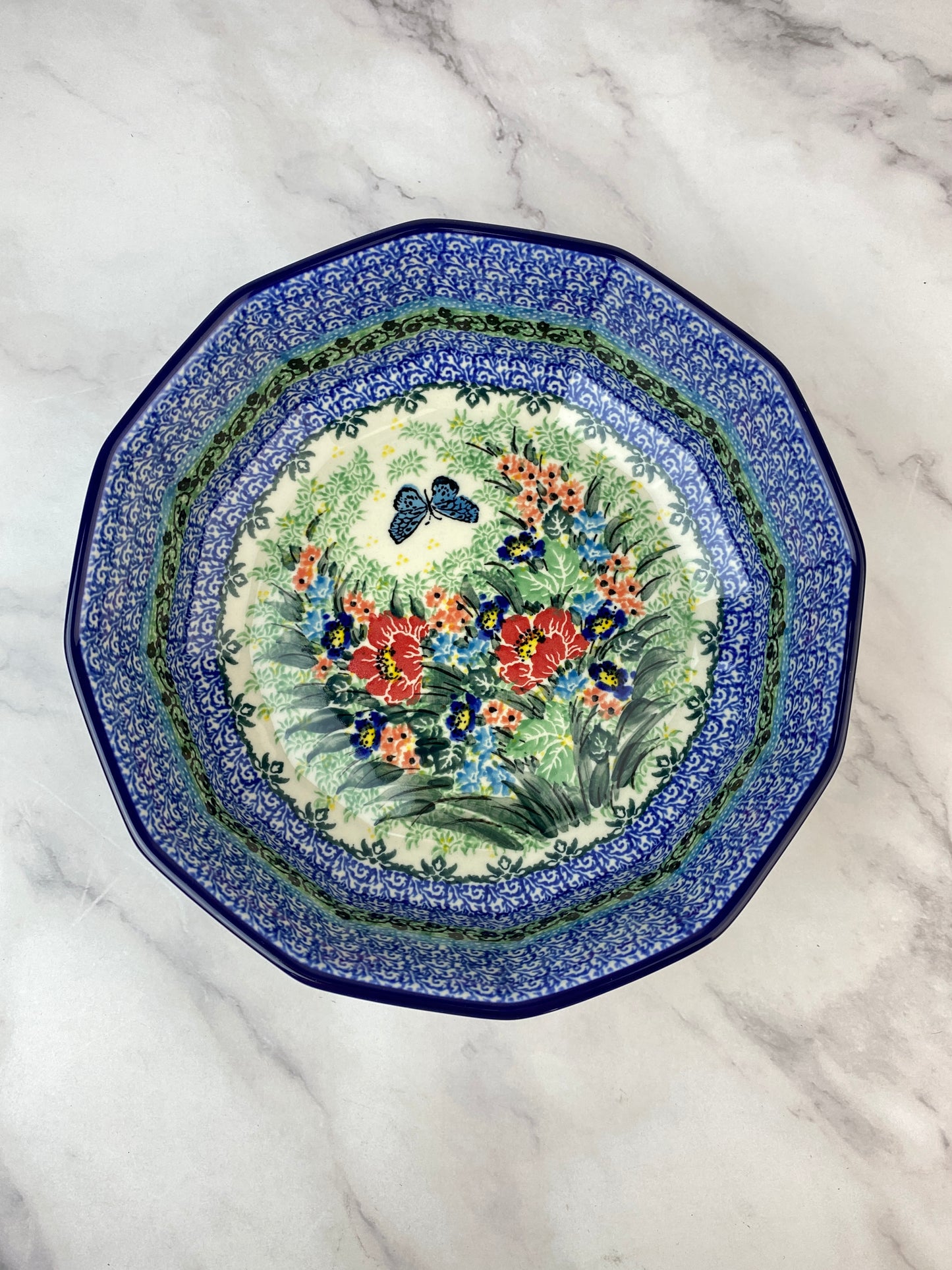 A beautiful 12 sided bowl with incredible angles and flare. The bowl measures 9" in diameter and is 2.75" deep.