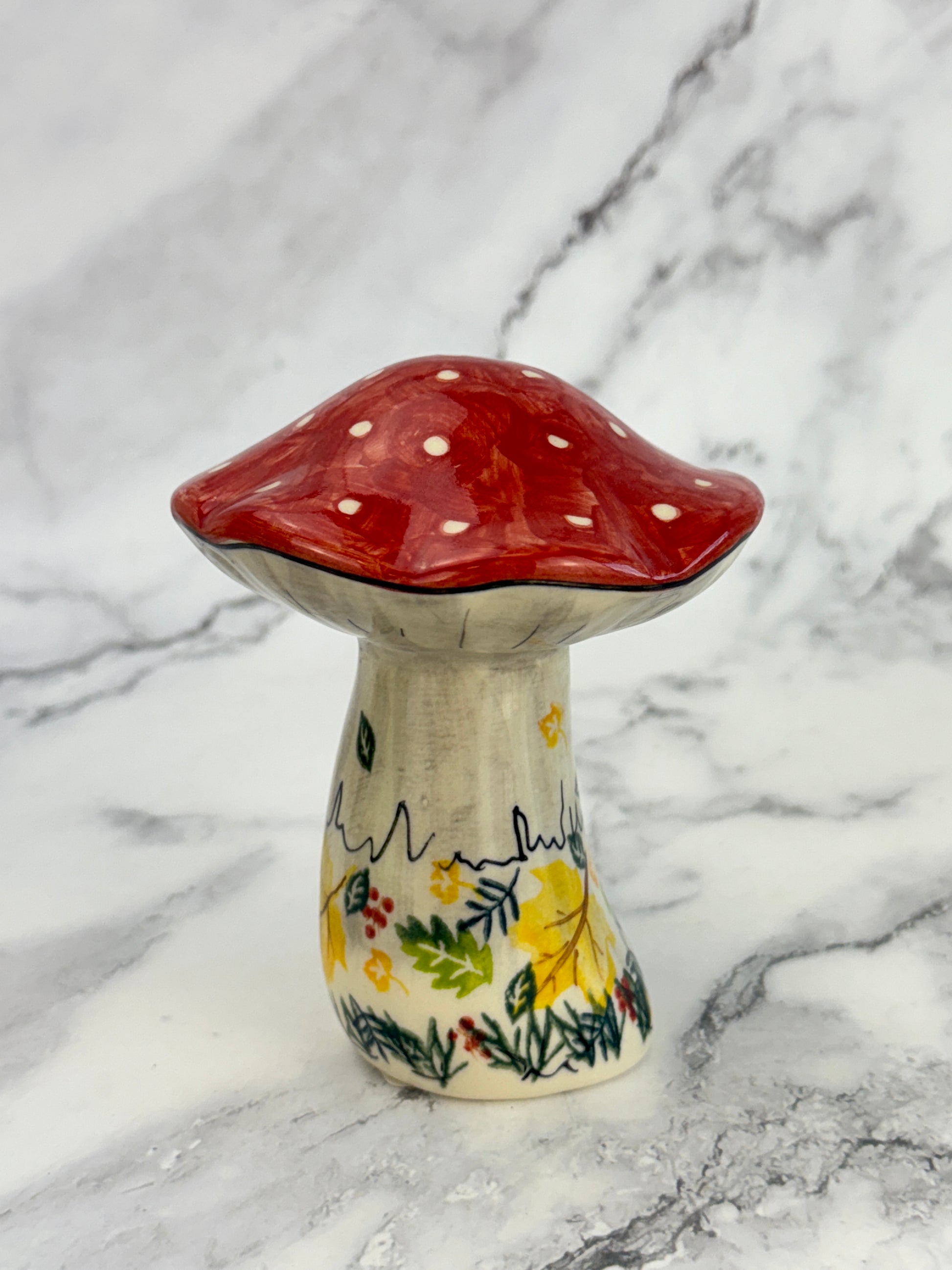 This charming mushroom would make a wonderful addition to any fall display, garden bed, or windowsill. Beautifully and lovingly hand painted in Poland.